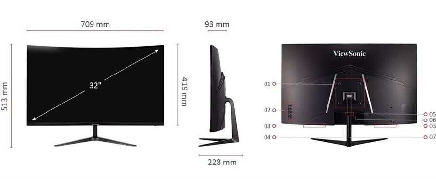|           Ultimate Immersion                    The 32 1500R display is perfect for losing yourself in your favorite games. The curved screen allows for more comfort, and deeper immersion.                    Seamless Gameplay                    No matter your favorite game, whether a first-person shooter, racing and real-time strategy, the hyper-responsive 165Hz refresh rate virtually eliminates lag and motion blur. So you can enjoy smooth gameplay and flawless graphics.                    React Instantly                    Every millisecond is crucial, and the fast 1ms (MPRT) response time minimizes blur and ghosting, helping you claim more victories in game.                    Prevent Screen Tearing                    With AMD FreeSync technology, the monitor is able to adapt so that there is less fluctuation and jumpiness in the image.                    Brace for true darkness                    See and move fluidly in the shadows with ViewSonics Black Stabilization feature. When enabled, the darkest scenes are lit up for enhanced visibility so you can spot the finer details and stay ahead of the pack.                    Render Every Detail                    See your games in rich detail with our Full HD 1080p display. Combined with a 165Hz refresh rate, you can see every detail in smooth motion.                    Mega Dynamic Contrast                    A mega dynamic contrast ratio of 80M:1 creates depth in images by adding more definition to the darkest and brightest colors on the screen to ensure images are shown with the finest details.                    User-Customized Game Mode                    ViewSonics exclusive ViewMode offers specialized presets to fit different usage scenarios. These presets deliver the optimal viewing characteristics for each scenario. The Game Mode integrates pre-calibrated FPS, RTS and MOBA game settings with in-game testing and adjustments for the best blend of color and technology.                    Dual Integrated Speakers                    The monitor accents its incredible screen performance with stereo sound to complete your gaming experience.                    Low Energy Consumption                    ViewSonics energy efficient Eco-Mode adjusts brightness to the optimal setting to reduce power consumption and eye fatigue while also prolonging the monitors lifespan.          |