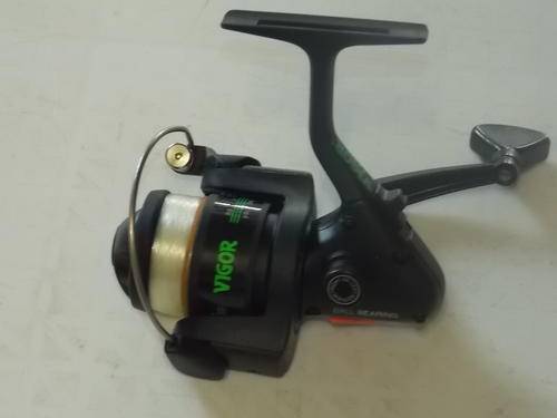 This is one of two Vigor FX200 right/left handed fishing reels with a gear ratio of 5.2:1 on auction. The line capacity is indicated as lbs/yds - 4/240, 6/200, 8/170. DIA. mm/m - 0.20/215, 0.25/180, 0.30/150. Although this reel is second hand it is almost brand new and in excellent working condition. It is ideal for light tackle and suits the 8ft rod perfectly. This reel is excellent for jigging and sea fly-fishing. It has a very smooth winding/retrieving action but the amount of ball bearings are not indicated. The angler that obtains this reel will not be disappointed.