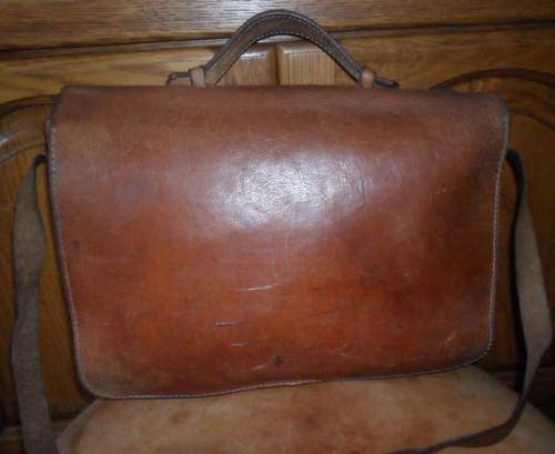 VINTAGE TAN LEATHER SATCHEL BAG -MEASURING 25CM LENGTH X HEIGHT 26CM X 11CM WIDTH X STRAP 115CM LENGTH - MADE BY FAIRHEADS LEATHER WORKS - PLEASE VIEW PHOTOGRAPHS FOR CONDITION - POSTAGE 40