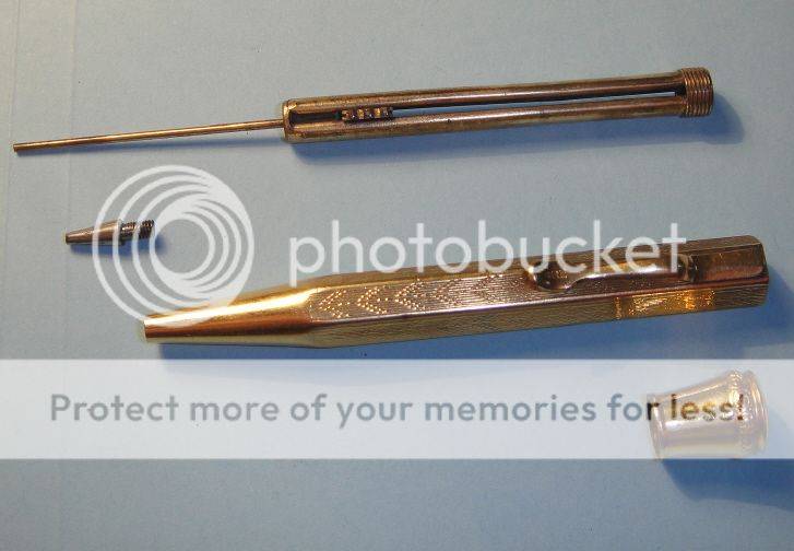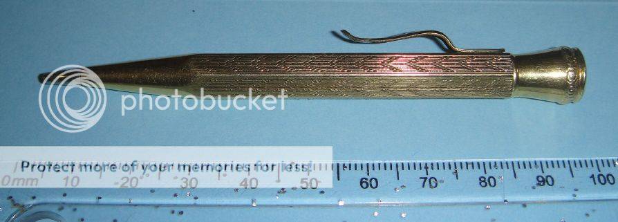 My jeweler had a look at the vintage pencil and said that only the thin outer layer is 18 ct gold. It is thus not a “solid” gold pencil. It has no identifying marks on it and I am not exactly sure from what period in dates from. It is 95 mm in length and has no lead (to write) included.