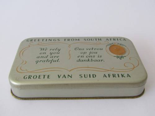 Vintage 1940 WW2 Christmas chocolate Tin, 18cm x 11cm x 3cm, Greetings from South Africa