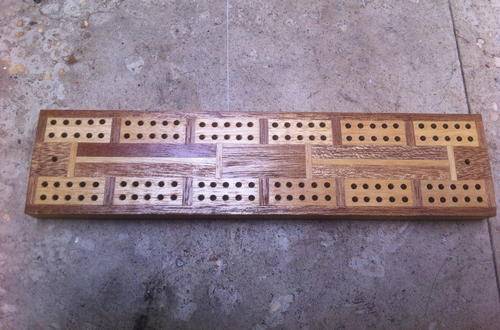 Vintage 1960s Inlaid Wood Cribbage Board 2 Track w pegs & box, in very good condition ,