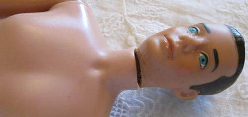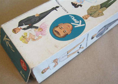 A VINTAGE 1961 ? KEN DOLL IN HIS ORIGINAL BOX, TWO TOPS AND SEVEN PAIRS OF SHOES IN GOOD CONDITION. I AM NO EXPERT WHEN IT COMES TO THESE DOLLS AND THINK THE FOLLOWING INFORMATION IS CORRECT ?? I SEE A BOX THE SAME AS THIS IS FOR SALE ON THE INTERNET FOR $45.95 !!! THIS BOX SAYS IMPORTED FROM JAPAN, THE DOLL HAS MATTEL, USA MARKED ON HIS BOTTOM. HE HAS BRUNETTE PAINTED HAIR, STRAIGHT NOT BENDABLE LEGS WITH VERY SLIGHT BROWNING. HIS FINGERS AND TOES ARE FINE. I AM NOT SURE WHAT IS GOING ON IN THE NECK AREA, HIS HEAD TURNS ALL THE WAY AROUND DOES NOT APPEAR TO BE BROKEN, I HAVE REMOVED SOME OF THE, PERHAPS DIRT AND AGED, SOFT RUBBER ?? BUT DONT WANT TO GO FURTHER. PLEASE HAVE A LOOK AT THE PICTURES PROVIDED AND DRAW YOUR OWN CONCLUSIONS.