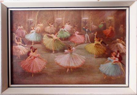 VINTAGE 1965 - CHARMING MINIATURE PRINT OF PAINTING BY CARLOTTA EDWARDS. SIZE: 16CM X 11CM. PLEASE NOTE THAT THERE ARE A COUPLE NICKS IN THE FRAME - BUT OTHERWISE IT IS IN GOOD VINTAGE CONDITION.