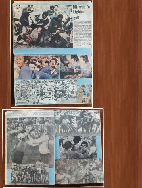 Vintage 1970's rugby scrapbook - old newspaper and magazine pictures : Springbok trials 1976 an 1977, Currie Cup final 1975 Northern Transvaal vs Free State, 1970's Currie Cup pictures, Springboks vs South America 1980 - large format (page size : 385mm x 255mm) 80 pages. The scrapbook is still in a very good condition for its age and will be a great addition to your rugby collection. See pictures below for some of the content. No international transactions.