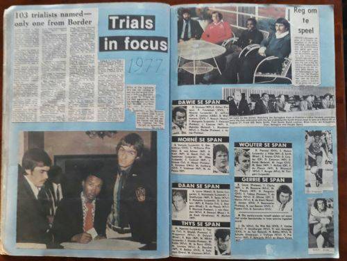 Vintage 1970's rugby scrapbook - Springbok trials, SA vs South America 1980, Currie Cup 1970's