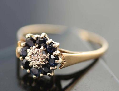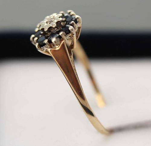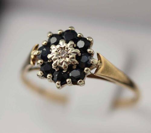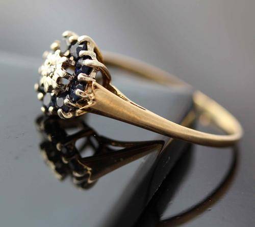 VINTAGE 1981 BLUE SAPPHIRE DIAMOND RING. 9ct GOLD JEWELLER AUTHENTICATION CERTIFICATE! LONDON ASSAY