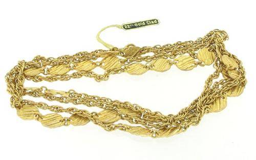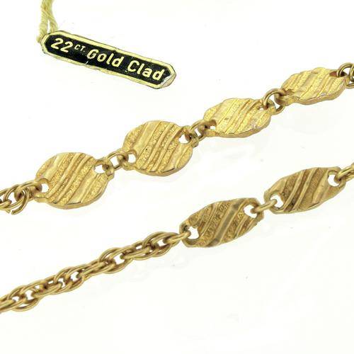 This necklace marked as 22ct Gold clad -- ie is a base metal plated with 22ct gold.
