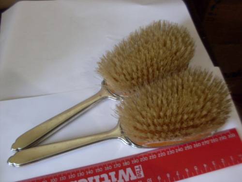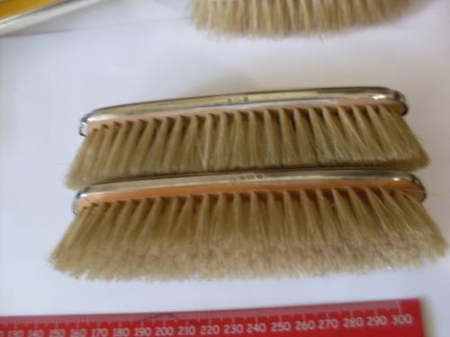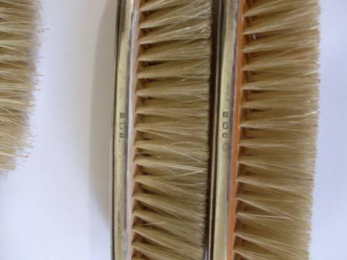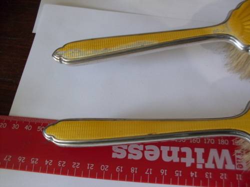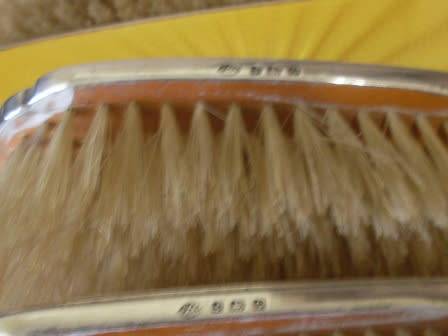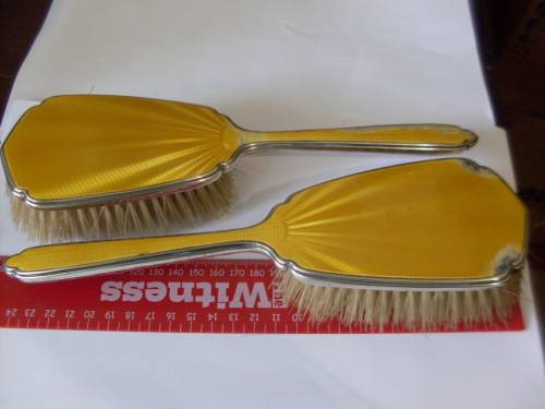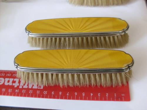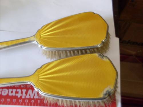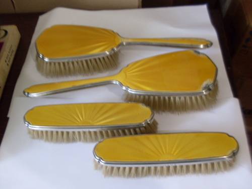 VINTAGE 4 PIECE ENAMELLED TOP HALLMARKED SILVER BRUSHES HALLMARKS ARE ANCHOR LION PASSANT G SLIGH AGE RELATED WEAR ON SOME ENAMELLING POSTAGE IS R115 WITH POSTNET TO POSTNET