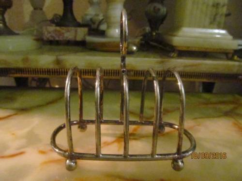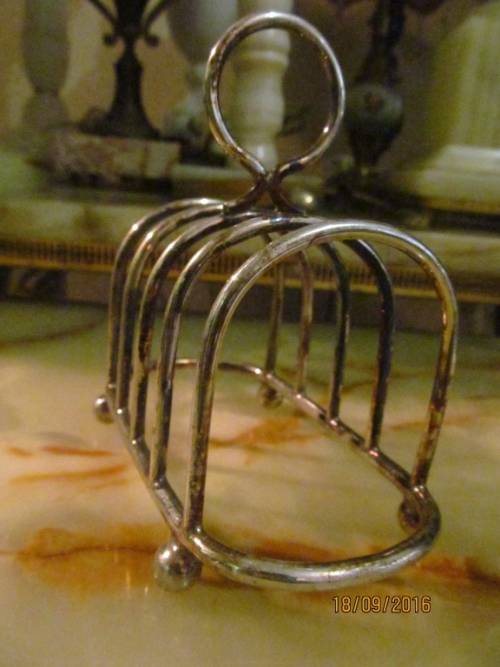 VICTORIAN SILVER PLATED TOAST RACK with 5 bars and Lovely Ring Handle ---- VINTAGE COLLECTABLE