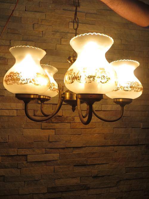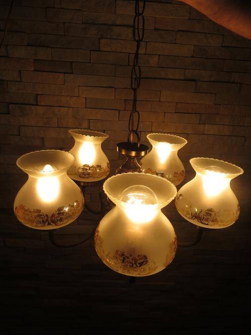 Vintage 5 Arm Chandelier Hanging Ceiling Light Fixture with Glass Lamp Shades...Stunner!