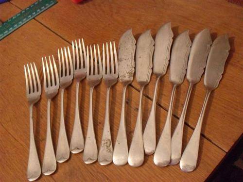 VINTAGE ......6 FISH KNIVES & 6 FISH FORKS MARKED BOLIVIAN SILVER....