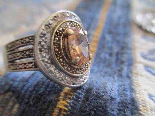 VINTAGE 9 ct GOLD AND STERLING SILVER RING SET WITH BEAUTIFUL CENTER GEM.THE CENTRE 9 CT, THE REST STERLING.WIDTH INSIDE 19MM.WIDTH ON TOP 17MM. WEIGHT 5.5 GRAMS. DARK SPOTS OR DISCOLORATION ON ANY ITEM WOULD BE THE SHADOW OF MY CAMERA, OR NATURAL PATINA. I DID NOT POLISH ANY ITEMS. ALL ITEMS ARE SOLID STERLING SILVER AND NOT FUSION, BONDED, PLATED, FILLED ETC ETC ..... THESE TERMS ARE USED FOR WORTHLESS BASE METAL WITH THIN LAYER OF SILVER THAT WILL ALWAYS WEAR OFF. PLEASE HAVE A LOOK AT MY OTHER ITEMS, ALL R1 START.