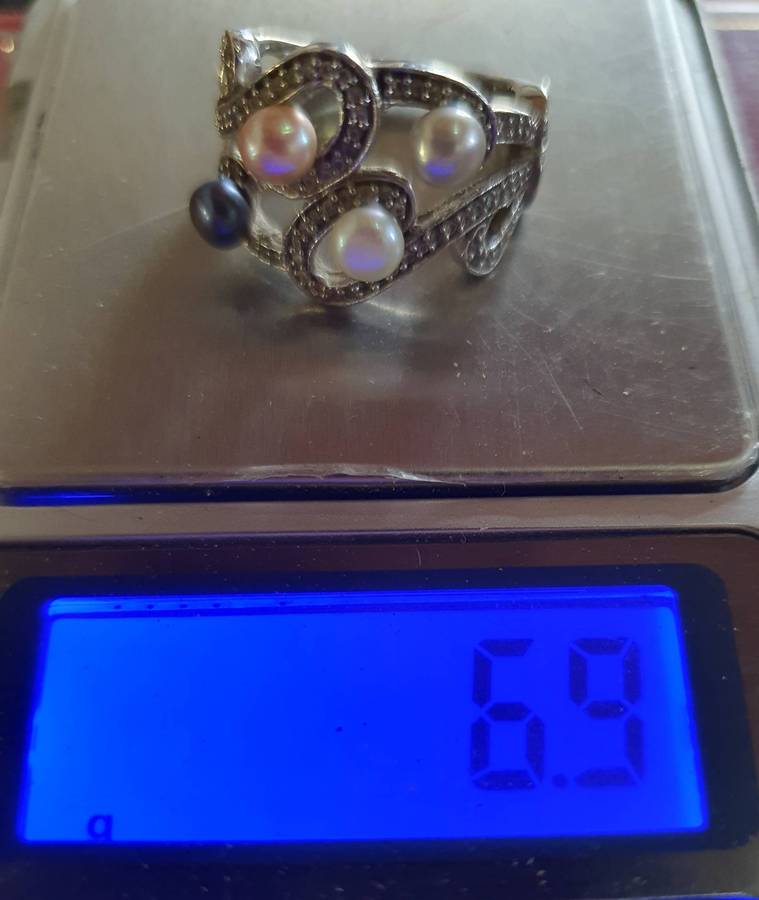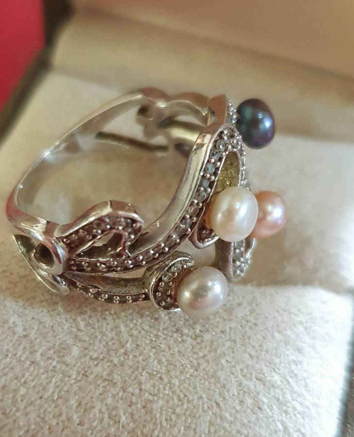 ON AUCTION: VINTAGE .925 STERLING RING WITH 4 X AKOYA PEARLS. VERY FINE DETAIL !!