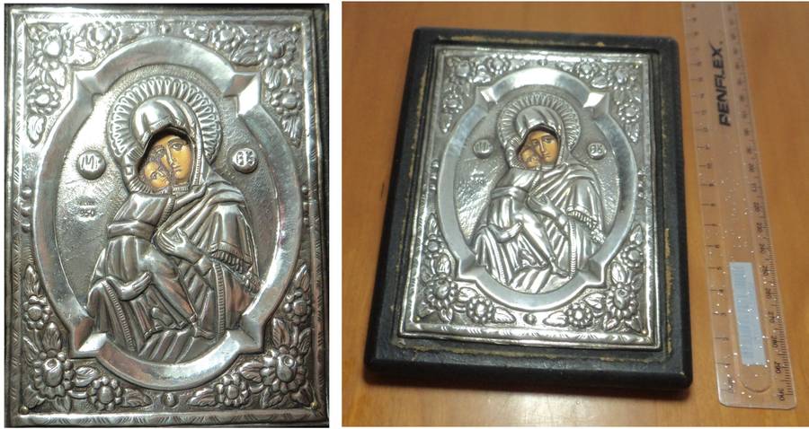 Vintage .950 Silver Greek Icon, Mary & Jesus Plaque