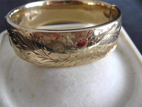 Vintage 9ct Rolled Gold Metal Core Solid Engraved Bangle Bracelet