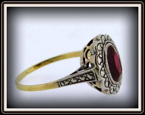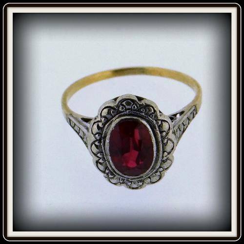 VINTAGE WHITE AND YELLOW GOLD RUBY RING