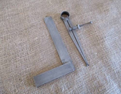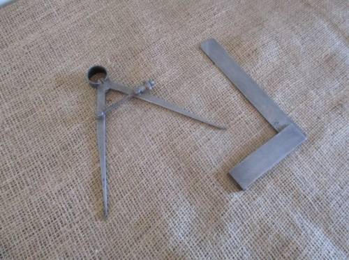 We are really vintage and came a long way to find a new home !!!! Vintage A Milmet Product metal square England and a vintage engineers compass divider caliper Japan Both these 2 golden oldies are in a good vintage condition Clean The name A de Villiers has been engraved on one leg of the engineers compass.