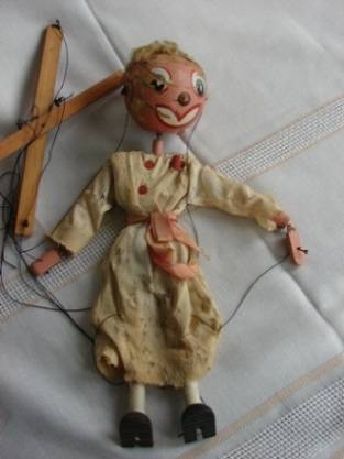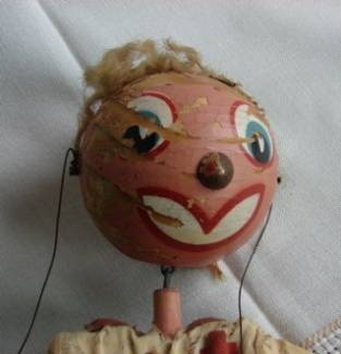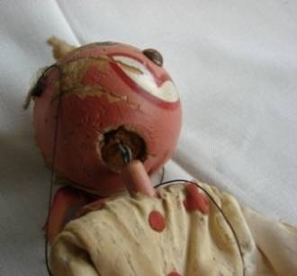 This is wonderful example of a Vintage Talentoon Nurse Puppet. I got this information from a reliable authority in the U.K. Her paintwork needs doing and she needs a new nurses outfit. You just don't see these at all. Her body is made of wood and her strings are tangled. She also needs to be restrung. She measures 33cm in length. She dates from the late thirties early forties.