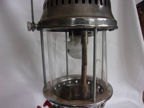 Vintage Anchor No. 909 kerosene pressure lantern. I would date this pressure lantern to the 1980s. It isa 350CP, and has a chromed metal body. The lantern is in very good clean condition (untested) - glass is spotless. Great buy for the collector.