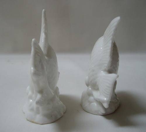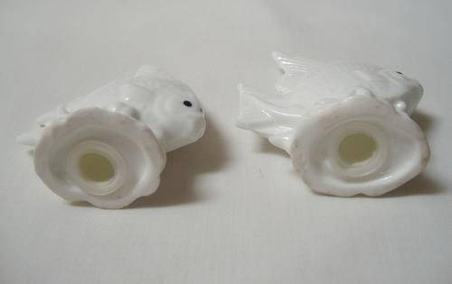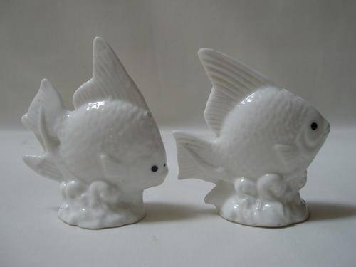 A set of white glazed porcelain salt and pepper shakers in the form of Angel fish.