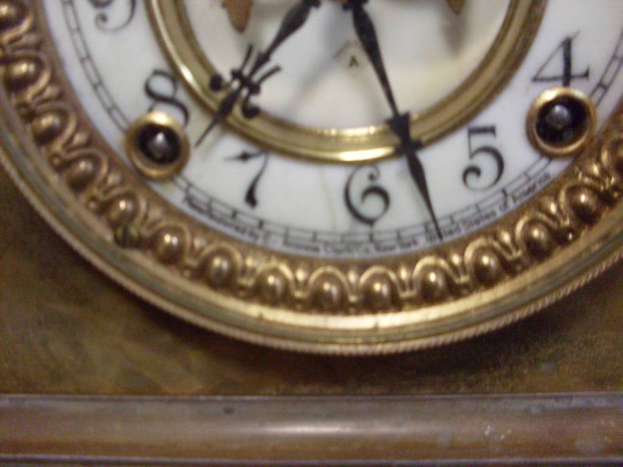 VINTAGE ANSONIA (POSSIBLY ONYX GREEN )MANTLE CLOCK ...WORKING