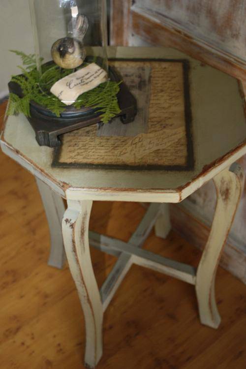 Vintage Antiqued, Distressed, Shabby Chic Table with Graphic transfer