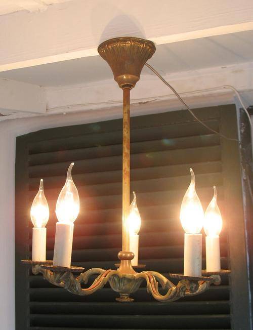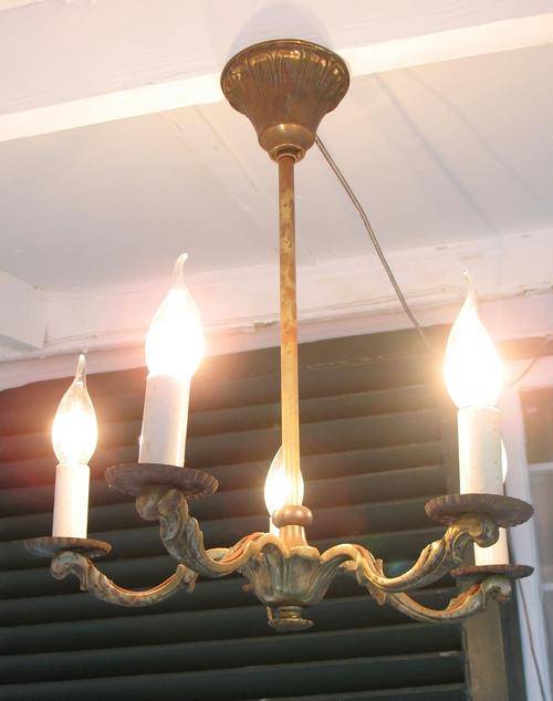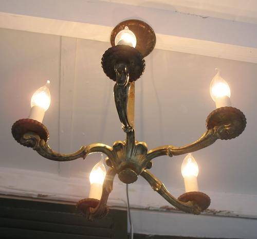 Vintage art deco brass chandelier one of a pair