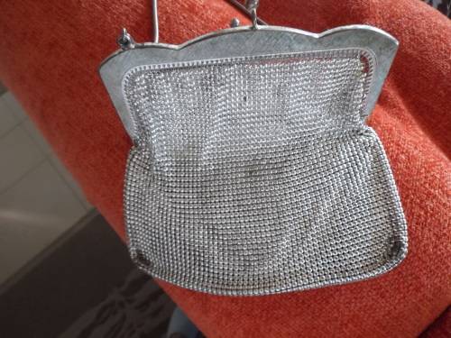 Vintage Art Deco Silver Mesh Evening Bag. 1950-1960, Has no lining. Tarnish on handle and a little on the corners of the bag. Has nice snake handle. P&P Post Office R45 with tracking number. Or Post Net R120. Well worth asking the price.