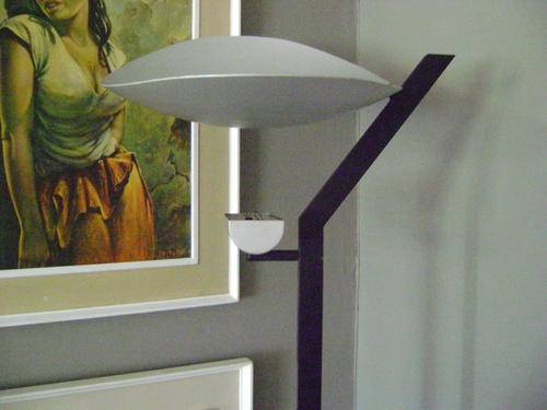 STUNNING HAND MADE AWARD WINNING ITALIAN FLOOR LAMP. DESIGNED BY WORLD FAMOUS ERNESTO GISMONDI IN 1988. HAS 2 ANODIZED ALUMINIUM DIFFUSERS. THE UPPER MOON-SHAPED ONE ADJUSTABLE ON HORIZONTAL AXIS. LOWER GIVES DIRECTIONAL GENERAL LIGHT. COMES WITH DIMMER SWITCH. UNBELIEVABLE LIGHT EFFECT WHEN ON AS LIGHT FROM LOWER DIFFUSER BOUNCES OFF UPPER ONE!!! NO OTHER LAMP LIKE IT. PINNACLE OF LIGHT DESIGN.NOT OUT OF PLACE IN ANY CONTEMPORARYSPACE NO MATTER HOW HIGH TECH . THESE LAMPS ARE STILL AVAILABLE BRAND NEW AND SELL FOR BETWEEN 1500 AND 2000 DOLLARS IN THE STATES OR 800 POUNDS IN ENGLAND. THIS IS A ABSOLUTE BARGAIN PRICE!!!!!!. GOOGLE WWW. ARTEMIDE ZEN FLOOR LAMP AND CHECK IT OUT!!!!! THIS LAMP IS 2 METERS TALL! REMEMBER YOU WILL STILL HAVE TO PAY SHIPPING COSTS, VAT AND DUTY IF YOU IMPORTED THIS LAMP YOURSELF PLUS THE RISK OF DAMAGE!!!!!