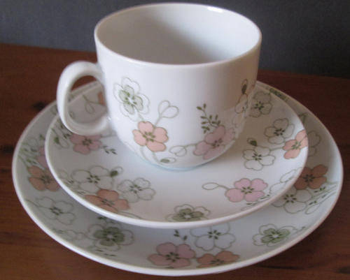Vintage Arzberg Trio White Pastel Pink Green Flowers