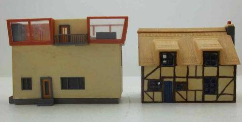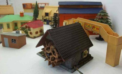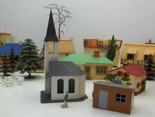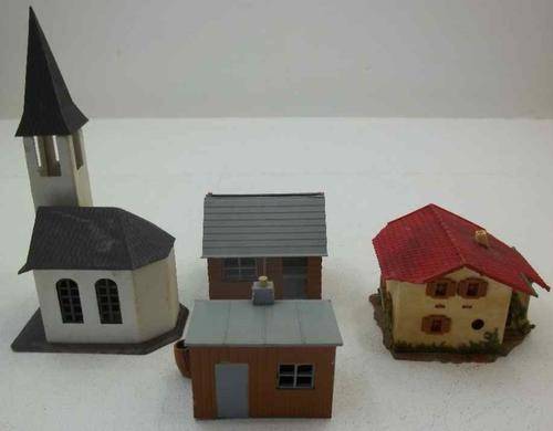 The largest house measures 24cm/10cm/6cm, and the smallest, 6cm/3,5cm/5cm. The windmill is 12V-16V & made in Germany, but not tested. There are 16 houses, including one "Faller, Made in West Germany, no. 264".