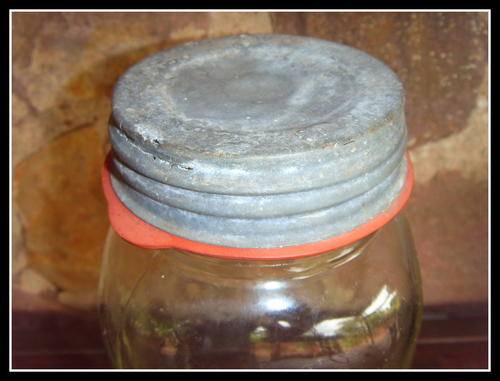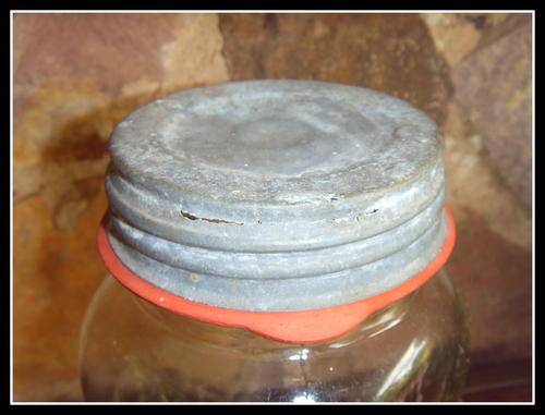 original zinc screw top lid with white porcelain seal inside. Extra large for canning - This measures 24 cm tall and 9 cm square.
