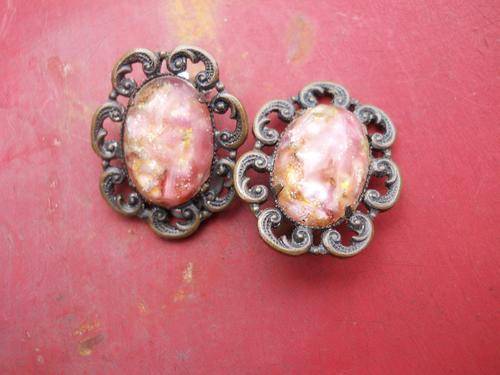 Vintage Austrian Semi Precious Stone Clip on Earrings