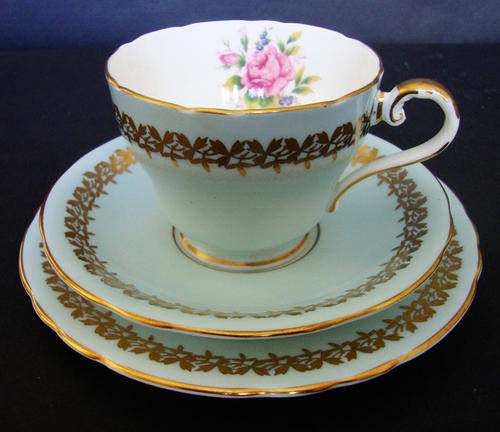 THIS BONE CHINA FOOTED TEA CUP, SAUCER, AND TEA/SIDE PLATE WAS MADE BY AYNSLEY CHINA COMPANY OF ENGLAND.