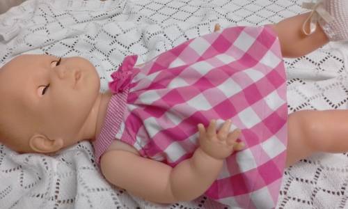 Cute old baby doll with a non working voice box and 54cm tall. Her blue eyes has lost some sparkle but still lovely just the same and in need of a loving mommy.