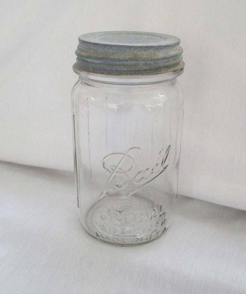 VINTAGE BALL SPECIAL GLASS JAR AITH ZINC LID MADE IN U.S.A. NO CHIPS OR CRACKS. DIMENSIONS:height incl lid 18.5cm, opening 8cm, SHIPPING:R50.00 VIA SAPO
