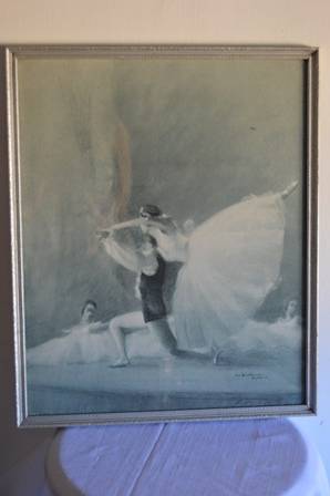 Stunning Vintage Ballerina Print done in charcoal grey and white framed the picture is 43cm x 35cm.