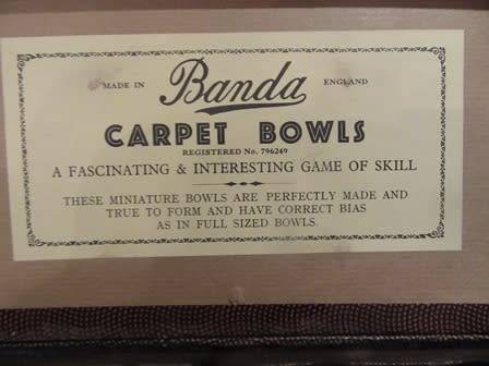Vintage Banda Carpet Bowls made in England, the set has all the Bowls and the instructions to play the game, the box is a bit tatty but can be expected with age.