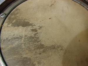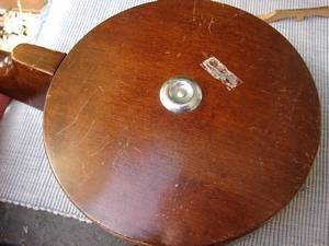 This vintage banjo has no strings, the gauze on the sound holes has disintegrated, some scratches condusive to wear and tear, neck is straight, no wear on frets some damage on machine head nut. Could be a part missing on the bridge.