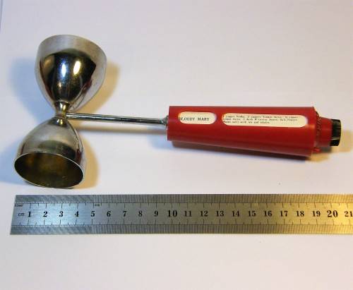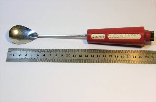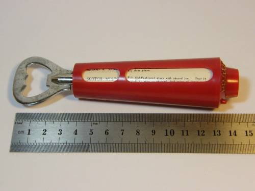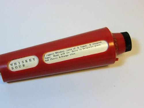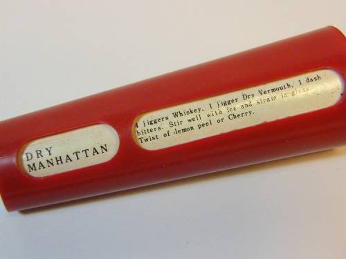 Vintage bar tool set with recipes in handles - bottle opener is missing its turning knob