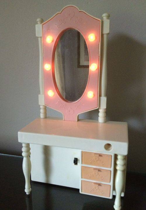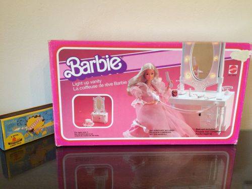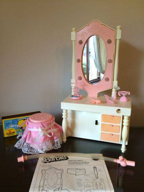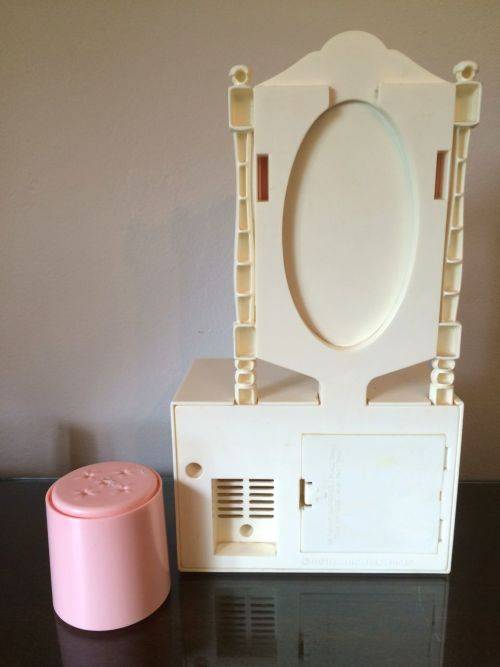 1982 Barbie Dressing Table and Stool Set. This awesome vanity lights up and hair dryer blows air!
