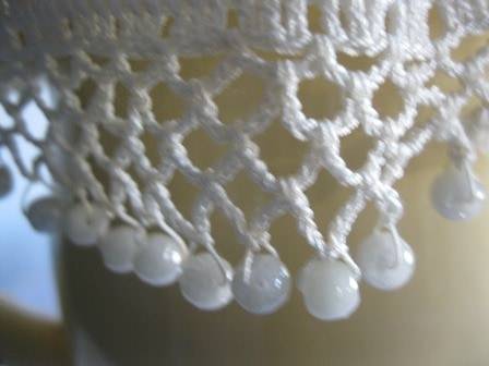 Vintage Beaded Milk Cosie with White beads 20cm dia, beautifully done!!
