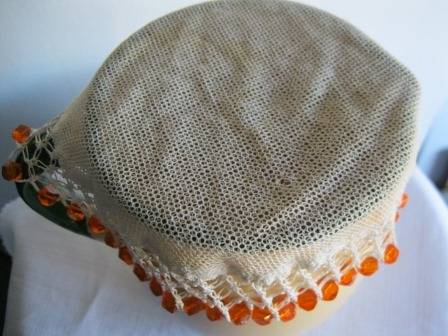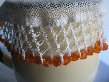 Vintage Beaded Milk Cosie with Orange Glass beads 20cm dia, beautifully done!!