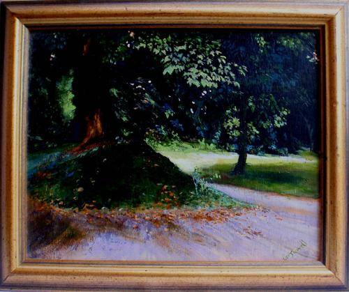 VINTAGE - BEAUTIFUL ORIGINAL OIL PAINTING - SIGNED LEO JEWELL. SEE DETAILS STUCK ON THE BACK OF THE PAINTING - PAINTED IN THE EARLY 60'S. SIZE: 38CM X 31CM (INCLUDES FRAME)