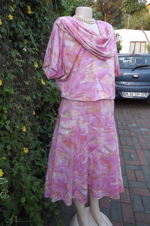 Vintage Beverley Bond geometric patterned size 42/18 dress in pinks.Flair yoked skirt.