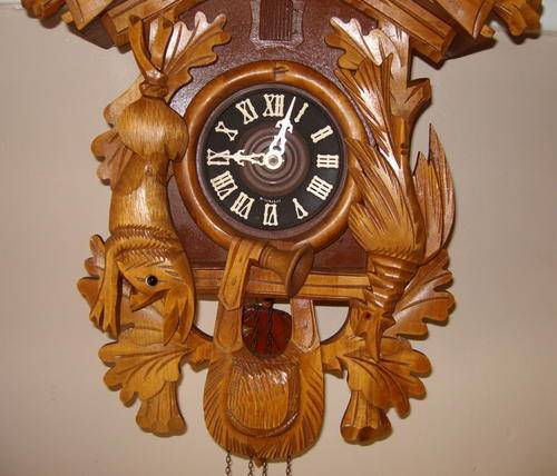 the bottom. A plastic cuckoo appears every half hour and hour from behind a little door.