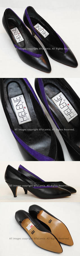 Vintage black genuine LEATHER heels with purple suede accent strip Helene Spark label
