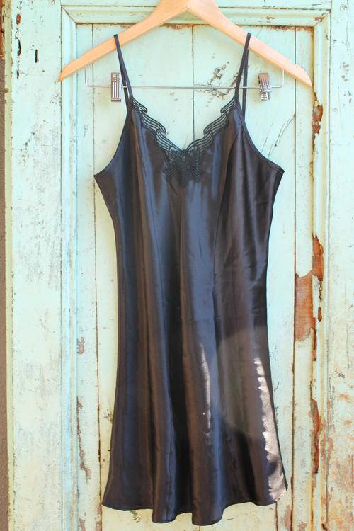 Vintage Black Satin Feel Slip (Says size 12 but will fit a small)