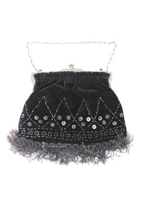 Satin Material with Pailettes and Steel Chain and Steel Opening Frame.